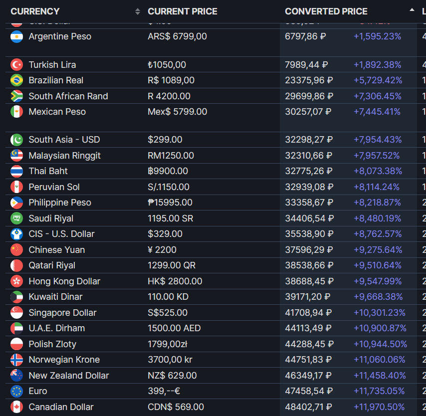 Игра имеет баг стима. В некоторых валютах ценник на игру составляет 60к руб.